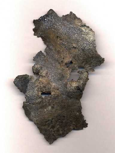 Φύλλο αυτοφυούς μολύβδου πάνω σε σχιστόλιθο (7,5 cm). Garpenberg Norra, Hedemorra, Σουηδία. Photo: John Veevaert, Trinity Mineral Company. |