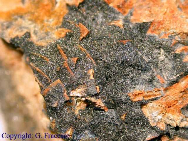 Βουλανζερίτης πάνω σε σιδηρίτη. Balme, Ala Valley, Torino Province, Piedmont, Ιταλία. Photo: Giovanni Fraccaro. |
