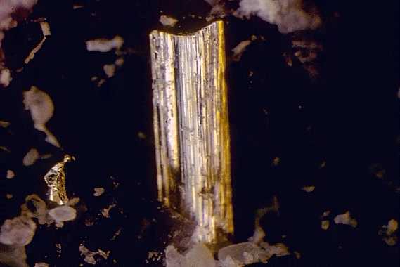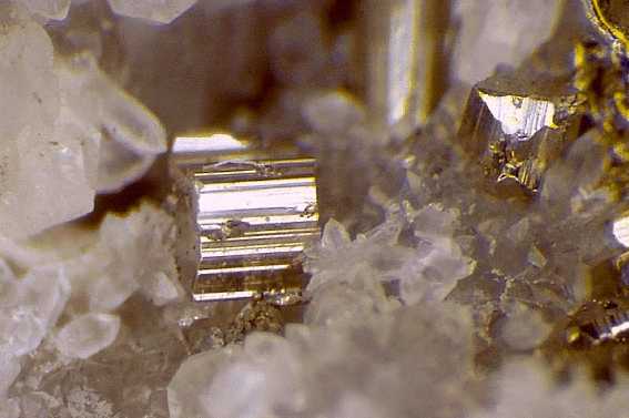 Καλαβερίτης σε χαλαζιακό υλικό (3 mm). Ορυχείο Cresson, Cripple Creek, Colorado, Η.Π.Α. Photo: John Veevaert, Trinity Mineral Company. |