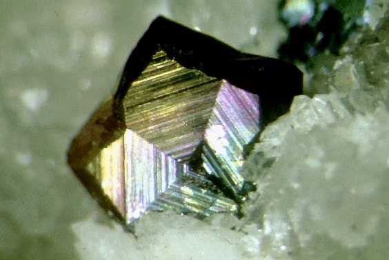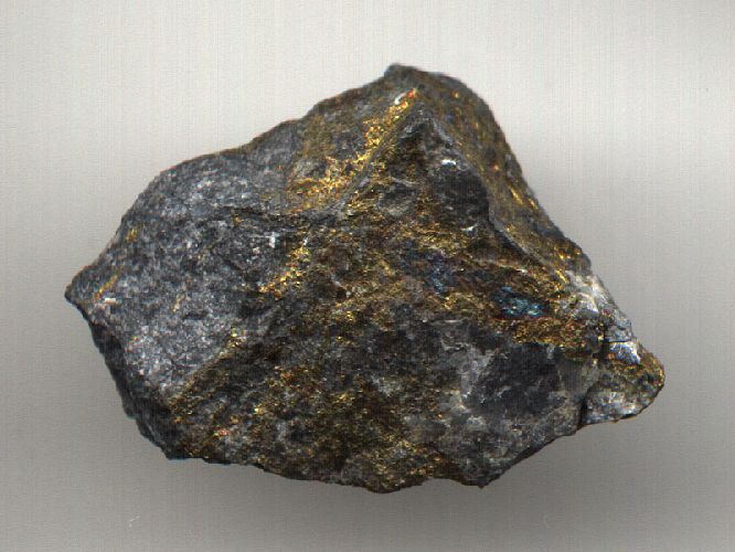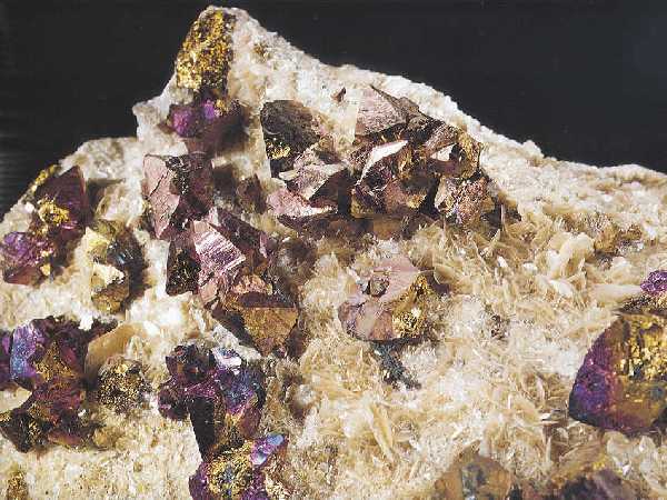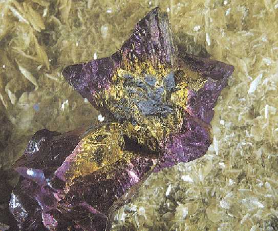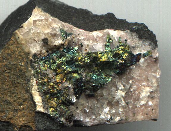 Χαλκοπυρίτης με ιριδίζοντα χρώματα οξείδωσης. Photo: Greene Gallery Mineral Collection, University of Wisconsin, Milwaukee. |