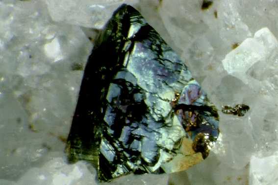 Χαλκοπυρίτης με ιριδίζοντα χρώματα οξείδωσης (2,5 cm). Westerwald, Γερμανία. Photo: Olaf Medenbach, The Magic of Minerals. |