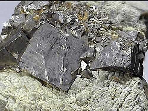Κυβικοί κρύσταλλοι κοβαλτίνη πάνω σε ασβεστίτη. Sudbury, Ontario, Καναδάς. Photo: Rob Lavinsky, iRocks.com. |