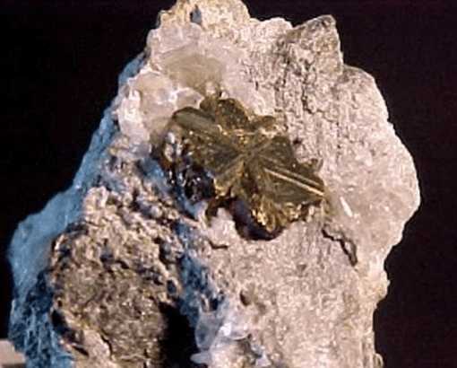 Δίδυμος κρύσταλλος κουβανίτη. Ορυχείο Strathona, Sudbury, Ontario, Καναδάς. Photo: Lou Perloff, The Photo-Atlas of Minerals. |