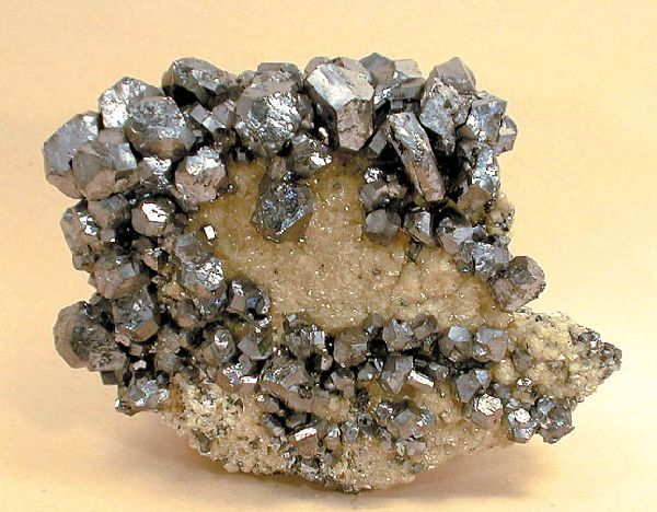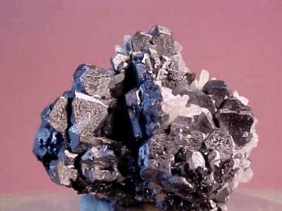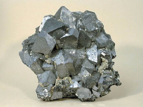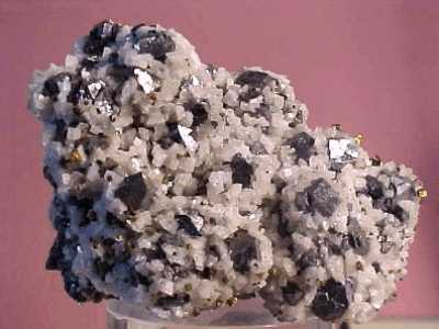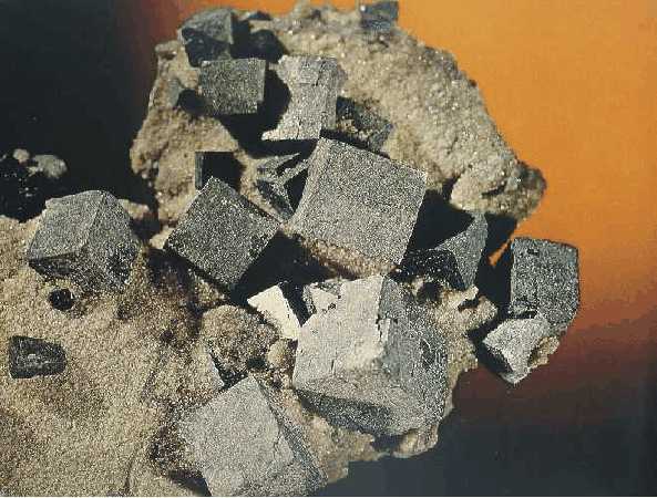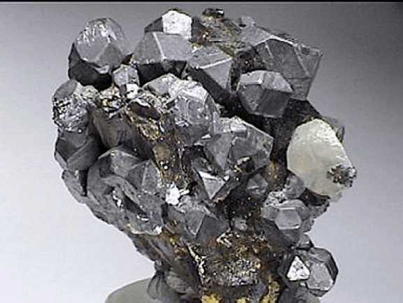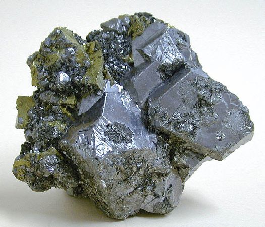 Συσσωμάτωμα κυβικών κρυστάλλων γαληνίτη με μαγνητοπυρίτη (6 cm). Dal'Negorsk, Ρωσία. Photo: John Veevaert, Trinity Mineral Company. |