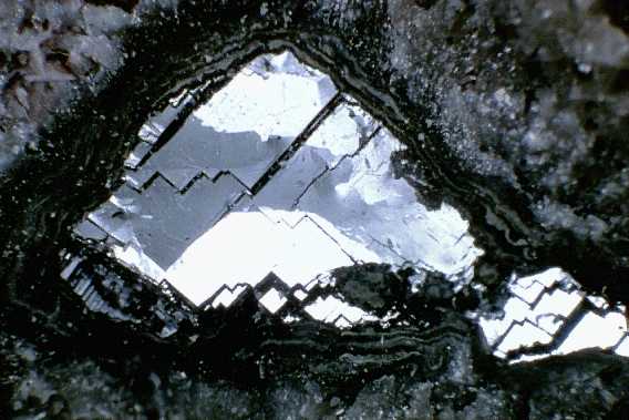 Γαληνίτης, διδυμία διεισδύσεως. Ορυχείο Julcani, Huancavelica Dept., Περού. Photo: Lou Perloff, The Photo-Atlas of Minerals. |