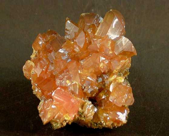 Πορτοκαλόχρωμοι κρύσταλλοι σανδαράχης (5 cm). Ορυχείο Twin Creeks, Winnemucca, Humboldt County, Nevada, Η.Π.Α. Photo: Francesc Fabre, Fabre Minerals. |