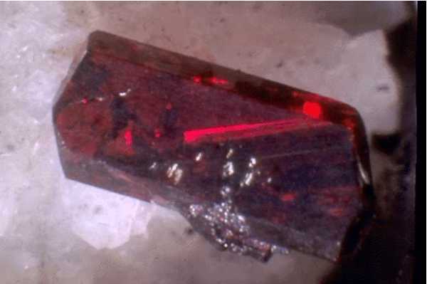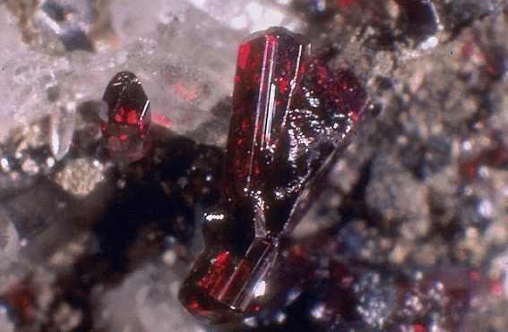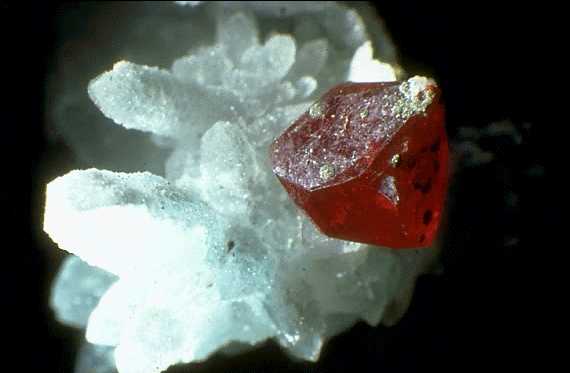 Πυραργυρίτης πάνω σε χαλαζία. Ορυχείο Guadeloupe, Zacatecas, Μεξικό. Photo: Lou Perloff, The Photo-Atlas of Minerals. |