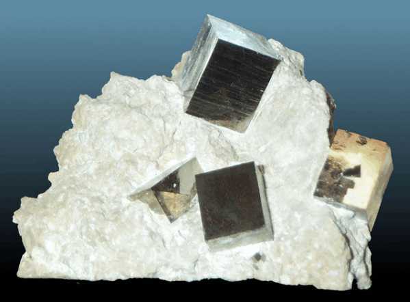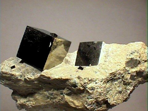 Κυβικοί κρύσταλλοι σιδηροπυρίτη. Photo: Amethyst Galleries, Inc. |