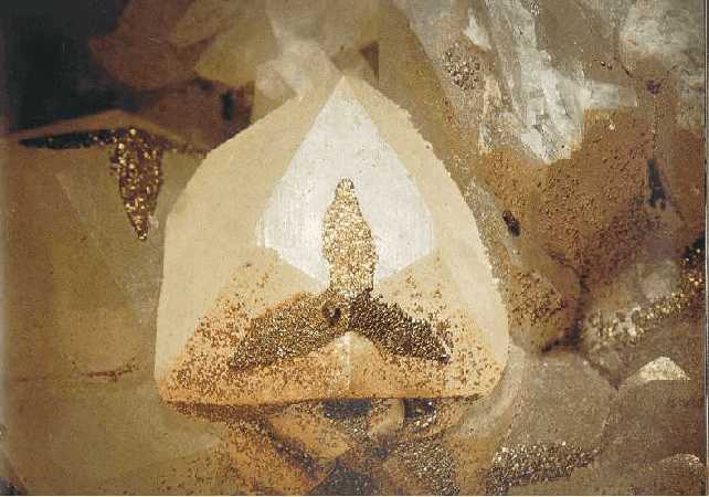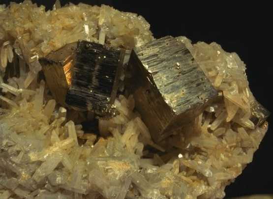 Σιδηροπυρίτης με ασβεστίτη. Naica, Chihuahua, Μεξικό. Photo: Lou Perloff, The Photo-Atlas of Minerals. |