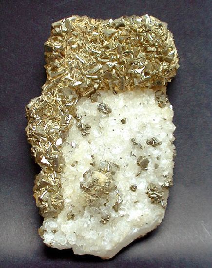 Σιδηροπυρίτης με ασβεστίτη. Ορυχείο Panasqueira, Beira Baixa, Πορτογαλία. Photo: Francesc Fabre, Fabre Minerals. |