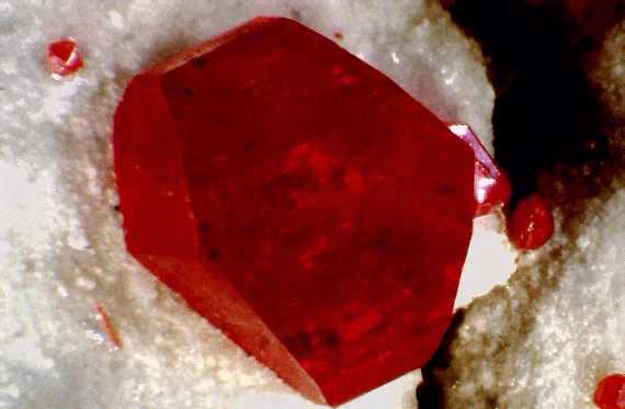 Κόκκινη σανδαράχη πάνω σε ασβεστίτη (2 cm). Hunan Province, Κίνα. Photo: John Attard, Attard's Minerals. |