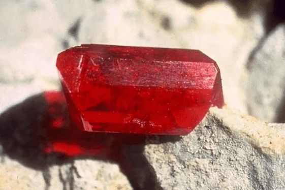 Κόκκινη σανδαράχη. Shimen, Hunan Province, Κίνα. Photo: Lou Perloff, The Photo-Atlas of Minerals. |