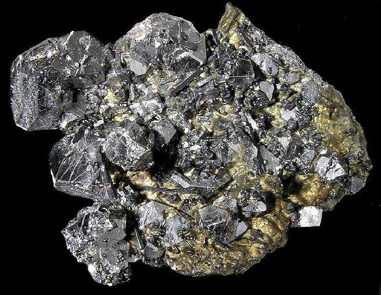 Οκταεδρικοί κρύσταλλοι σπερρυλίτη πάνω σε χαλκοπυρίτη. Talnak deposit, near Noril'sk, Ρωσία. Photo: Tom Loomis, Dakota Matrix. |