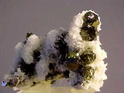 Σφαλερίτης με ασβεστίτη και χαλαζία (5,5 cm). Ορυχείο Shizhuyuan, Chiangning, Hunan, China. Photo: Isaias Casanova, IC Minerals. |