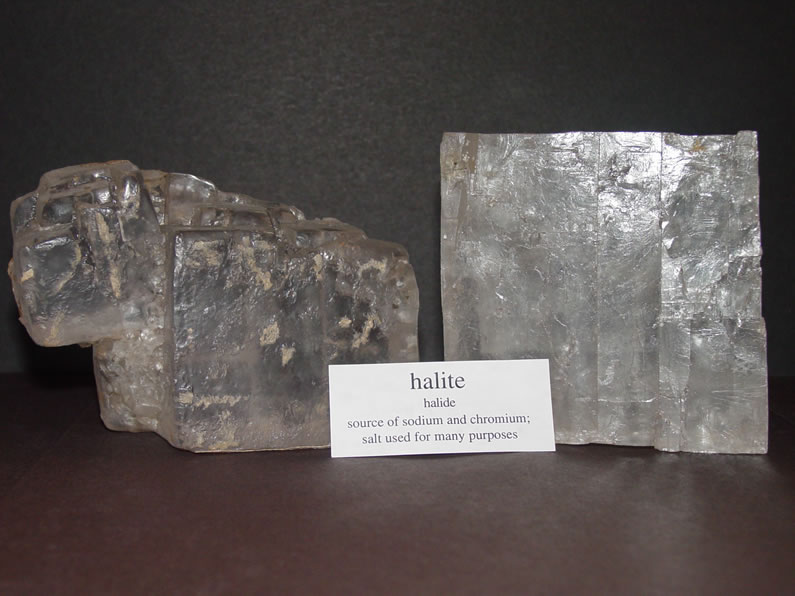 | Παρατηρήσεις: | Κρύσταλλοι κυβικοί, συχνά με χοανοειδή μορφή. Συσσωματώματα συμπαγή, κοκκώδη. Διαλυτός στο νερό. Αλμυρή γεύση. Βρίσκεται μαζί με συλβίνη, γύψο και άλλους εβαπορίτες. Είναι πηγή νατρίου και χλωρίου. | |