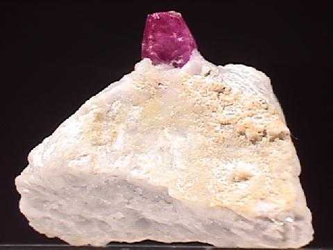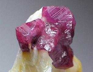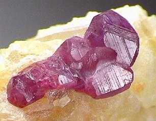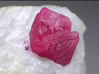 Ρουμπίνι πάνω σε ασβεστίτη. Όρη Haramosh, Baltistan, Northern Areas, Πακιστάν. Photo: Lou Perloff, The Photo-Atlas of Minerals. |