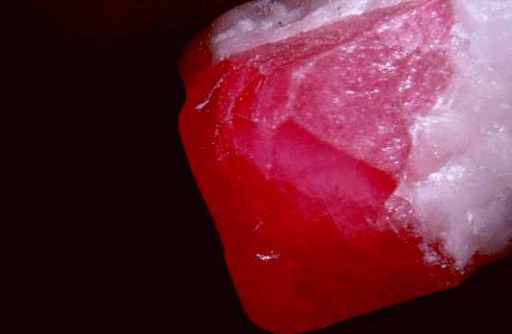 Ρουμπίνι (3 cm) (φαίνεται ο αποχωρισμός). Subramanium, Karnataka, Ινδία. Photo: Amethyst Galleries, Inc. |