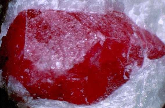 Ρουμπίνι (3,5 cm) (φαίνεται ο αποχωρισμός). Subramanium, Karnataka, Ινδία. Photo: Amethyst Galleries, Inc. |