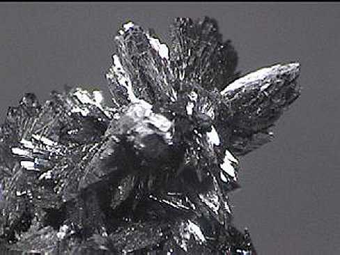 Πτερόμορφα συσσωματώματα μαγγανίτη (8 cm). Ορυχείο N'Chwaning, Kalahari Manganese Field, Northern Cape Province, Νότια Αφρική. Photo: John Veevaert, Trinity Mineral Company. |