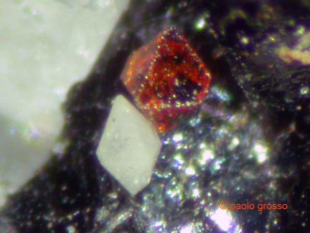 Κρύσταλλος πυροχλώρου (μέρος της προηγούμενης φωτογραφίας). Lauzon Farm, Oka, Quebec, Καναδάς. Photo: John Veevaert, Trinity Mineral Company. |