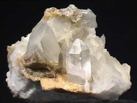 Ανκερίτης με χαλαζία (κέντρο) (6 cm). Carson Hill Quarry, Calaveras County, California, Η.Π.Α. Photo: Amethyst Galleries, Inc. |