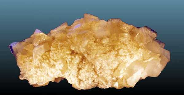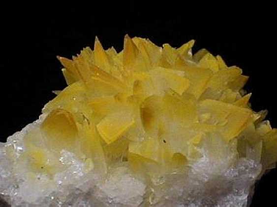 Συσσωμάτωμα κρυστάλλων κολεμανίτη (κίτρινο) (1 cm). Ορυχείο Boron, Boron, Kern County, California, Η.Π.Α. Photo: John Veevaert, Trinity Mineral Company. |