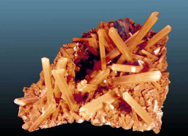 Πρισματικοί κρύσταλλοι γύψου (14 cm). Eisleben, Harz, Γερμανία. Photo: Olaf Medenbach, The Magic of Minerals. |