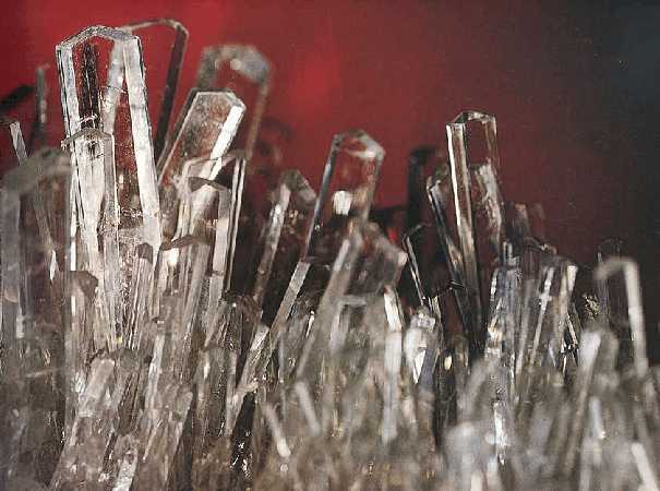 Πρισματικοί κρύσταλλοι γύψου μεγέθους 5 cm. Naica, Chihuahua, Μεξικό. Photo: Dave Barthelmy, Mineralogy Database. |