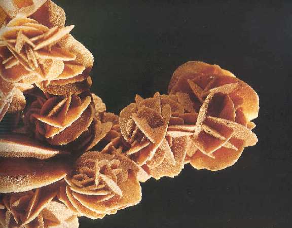 Ροδακοειδή συσσωματώματα γύψου (8 cm). El Golea, Sahara, Αλγερία. Photo: Olaf Medenbach, The Magic of Minerals. |