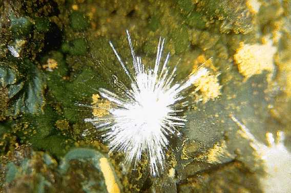 Ακτινωτά συσσωματώματα γύψου. Mnhattan, Nye County, Nevada, Η.Π.Α. Photo: Lou Perloff, The Photo-Atlas of Minerals. |