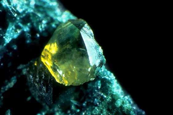 Παουελίτης πάνω σε βροχανθίτη. Antofagasta, Χιλή. Photo: Lou Perloff, The Photo-Atlas of Minerals. |