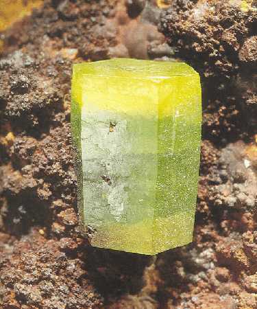 Πυρομορφίτης. Ορυχείο Broken Hill, Kabwe, Ζάμπια. Photo: Lou Perloff, The Photo-Atlas of Minerals. |