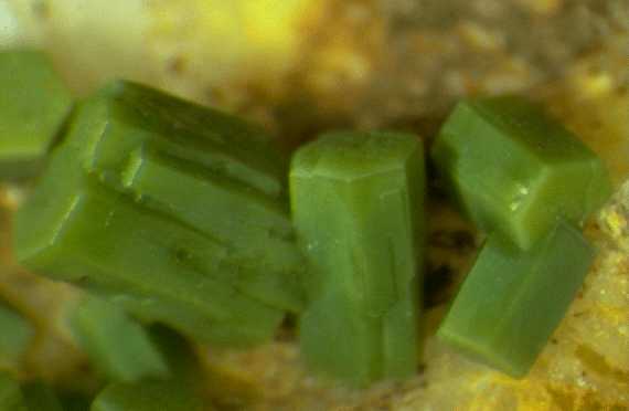Πυρομορφίτης. Ορυχείο Wheatley, Phoenixville, Chester County, Pennsylvania, Η.Π.Α. Photo: Lou Perloff, The Photo-Atlas of Minerals. |