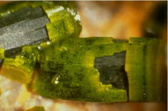 Πυρομορφίτης με μαλαχίτη. Rum Jungle, Northern Territories, Αυστραλία. Photo: Lou Perloff, The Photo-Atlas of Minerals. |