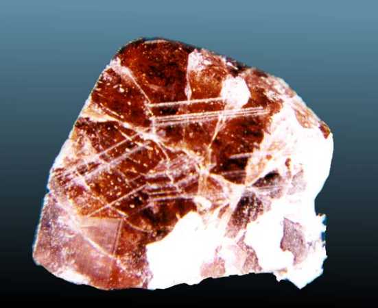 Καστανός κρύσταλλος αξινίτη (2 cm). Ορυχείο El Fenomino Tungsten, Northern Baja California, Μεξικό. Photo: Dave Barthelmy, Mineralogy Database. |