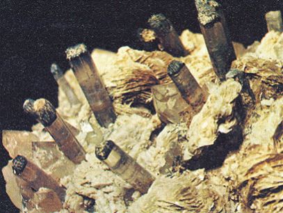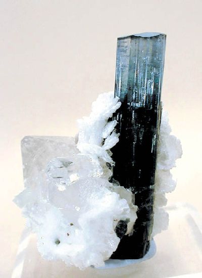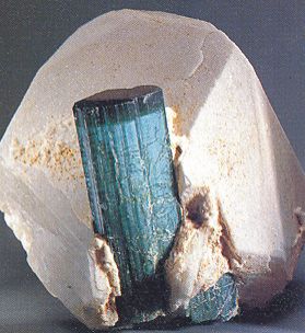 Βερντελίτης με ασβεστίτη. Minas Gerais, Βραζιλία. Photo: Hershel Friedman, The Mineral and Gemstone Kingdom. |