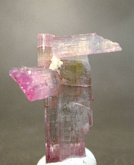 Τρίχρωμος (water-melon, καρπουζόχρωμος) κρύσταλλος ελβαΐτη (3 cm). Ορυχείο Himalaya, San Diego Co., Η.Π.Α. Photo: Francesc Fabre, Fabre Minerals. |