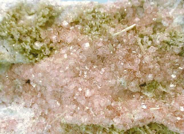 Γροσσουλάριος (ροζ) με διοψίδιο (πράσινο). Asbestos, Quebec, Καναδάς. Photo: Francesc Fabre, Fabre Minerals. |