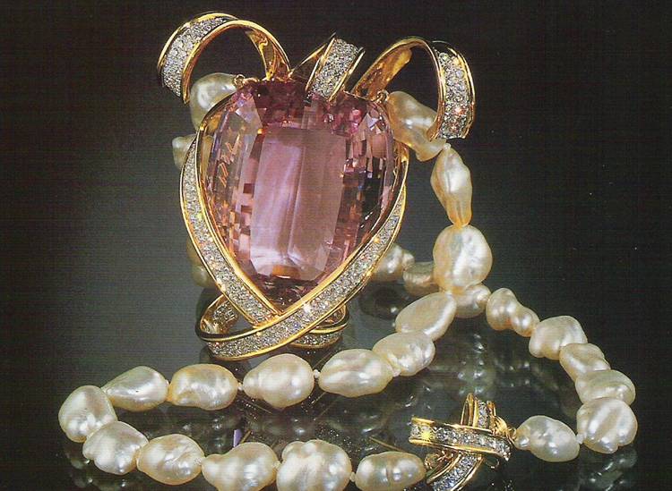 Περιδέραιο από κουνζίτη (ποικιλία σποδουμένη) και μαργαριτάρια. Photo: The National Gem Collection,. |