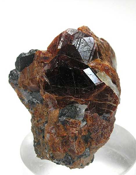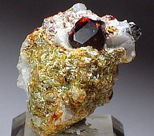 Καστανοκόκκινος κρύσταλλος χονδροδίτη με μοσχοβίτη. Palabora mine, Loolekop, Phalaborwa, Limpopo Province, Νότια Αφρική. Photo: John Veevaert, Trinity Mineral Company. |