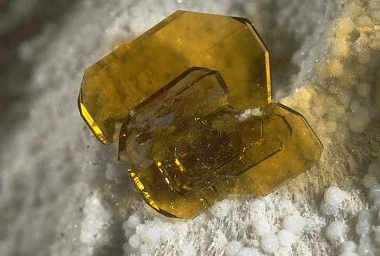 Φαϋαλίτης πάνω σε χριστοβαλίτη. Coso Hot Springs, Inyo County, California, Η.Π.Α. Photo: Milton Speckels, Photo Atlas of Minerals. |