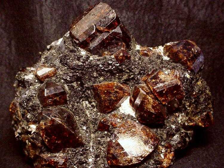 Καστανοκόκκινοι κρύσταλλοι ζιρκόνιου. Thorfjord, Seiland, Alta, Νορβηγία. Photo: Rob Lavinsky, iRocks.com. |