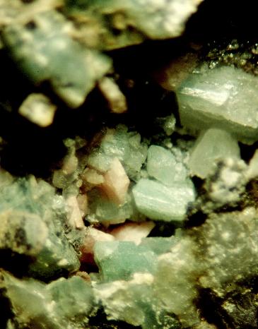Υαλοφανής (πράσινο) με ροδονίτη (ροζ). Harstigen Mine, Pajsberg, Filipstad, Värmland, Σουηδία. Photo: Kjell Gatedal. |