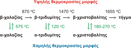 | Σχήμα 1. Πολύμορφα ορυκτά του SiO2. |