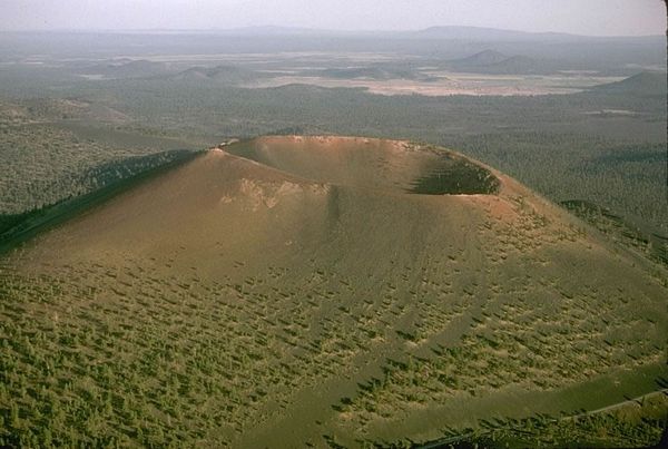 Ο κώνος σκωριών Sunset crater (Arizona, ΗΠΑ) εμφανίζει το κλασικό κωνικό σχήμα. Photo: Wikipedia. |