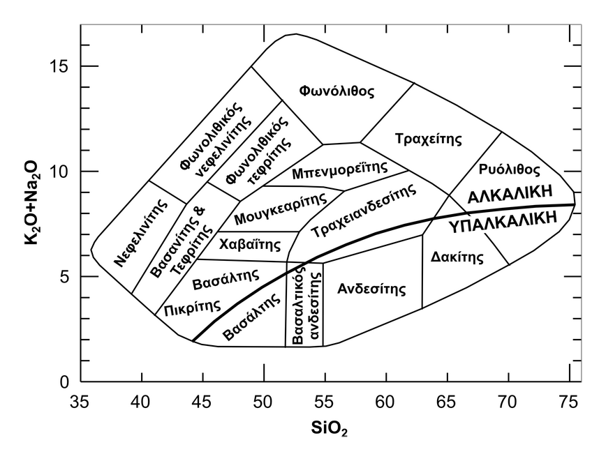 πετρωμάτων και διαχωρισμού της αλκαλικής από την υποαλκαλική σειρά. |