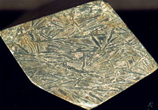 Δείγμα κοματιΐτη όπου διακρίνεται μακροσκοπικά ο ακανθοειδής ιστός (Washington, ΗΠΑ). Photo: Heron. |