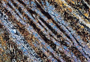 Μικροσκοπικές εικόνες κοματιΐτη όπου διακρίνεται ο ακανθοειδής ιστός με τους βελονοειδείς κρυστάλλους ολιβίνη. Photo: (1), (2), (3) |