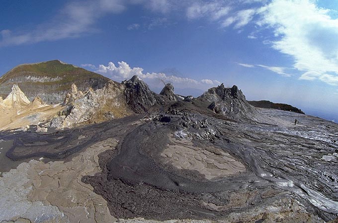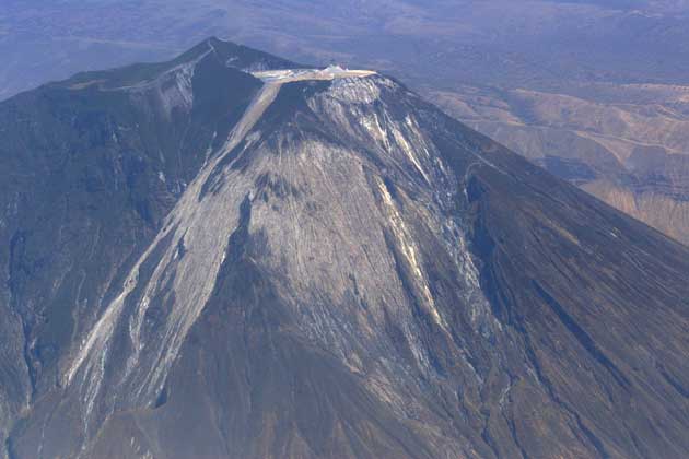 Το ηφαίστειο Ol Doinyo Lengai (Τανζανία, 2003). Στην κορυφή διακρίνεται ο κρατήρας απ΄όπου εκχύνονται καρμπονατιτικές λάβες (λευκό). Photo: Fulle M. |